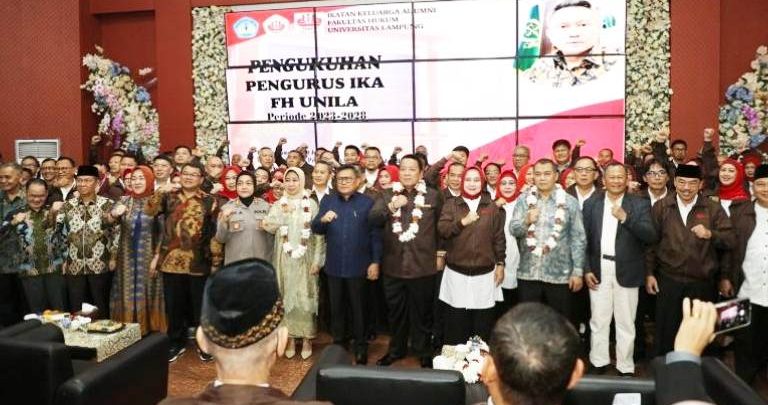SMARTNEWS.ID – Pengurus Ikatan Keluarga Alumni Fakultas Hukum Universitas Lampung (IKA FH Unila) masa bakti 2022-2023, resmi dikukuhkan, pada Sabtu, 10 Juni 2023.