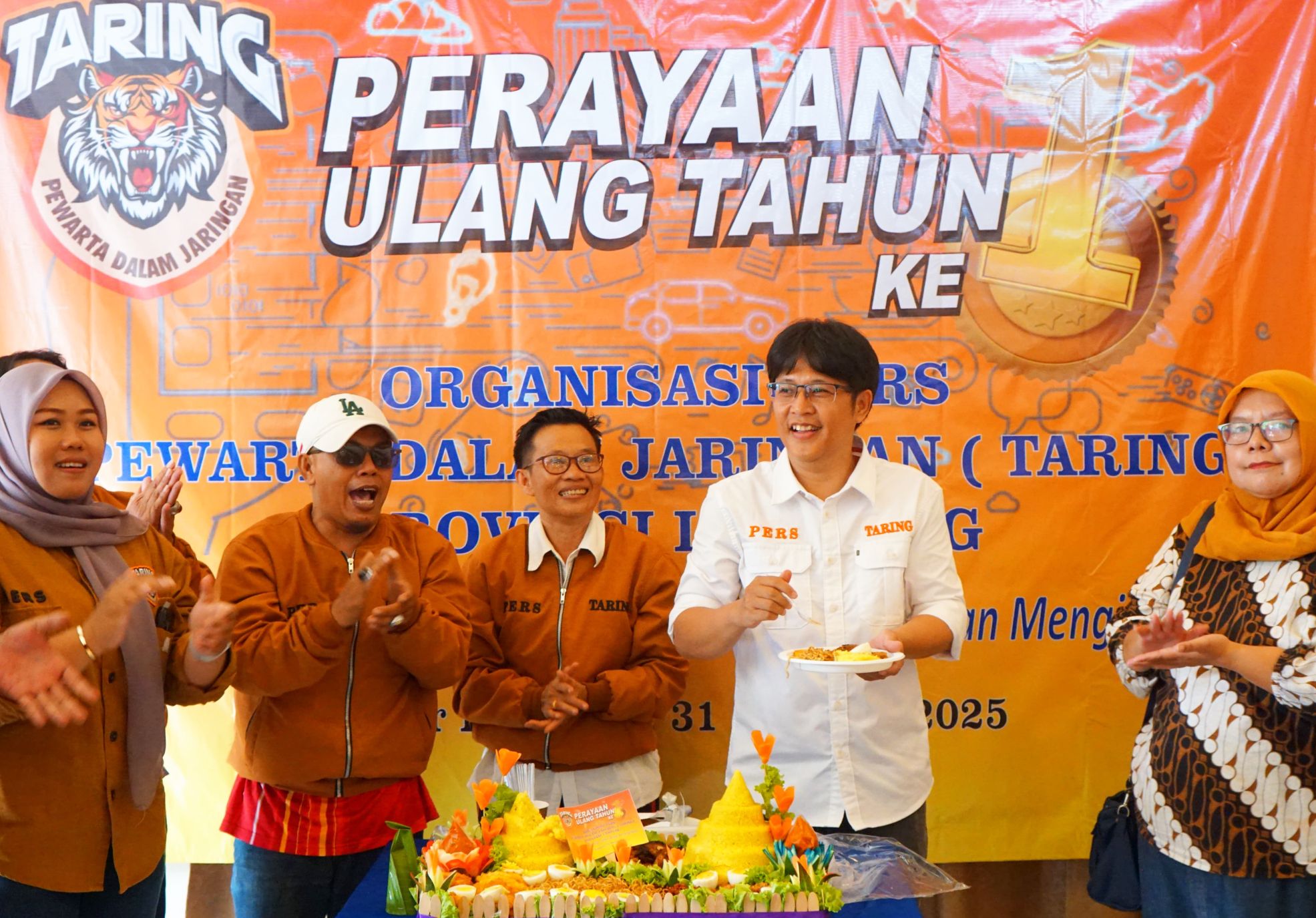 SMARTNEWS.ID – Organisasi Pers Pewarta Dalam Jaringan (Taring) merayakan hari ulang tahun (HUT) ke-1 dengan penuh suka cita. Kegiatan bertajuk “Setahun Bersama Pewarta: Tumbuh, Berbagi, Menginspirasi,” itu digelar di Umah Bone Resto, Kota Bandar Lampung, Jumat siang, 31 Oktober 2025.