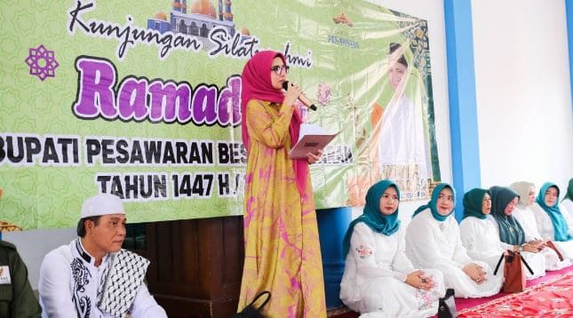 SMARTNEWS.ID – Bupati Pesawaran, Hj. Nanda Indira B, S.E., M.M, menghadiri Kunjungan Silaturahmi Ramadan Pemerintah Kabupaten Pesawaran Tahun 2026 M/1447 H yang digelar di dua lokasi, yakni Masjid Al-Zauahir, Desa Gunung Sari, Kecamatan Way Khilau, serta Masjid Nurul Huda, Desa Sidodadi, Kecamatan Way Lima Senin, (2/3/2026).