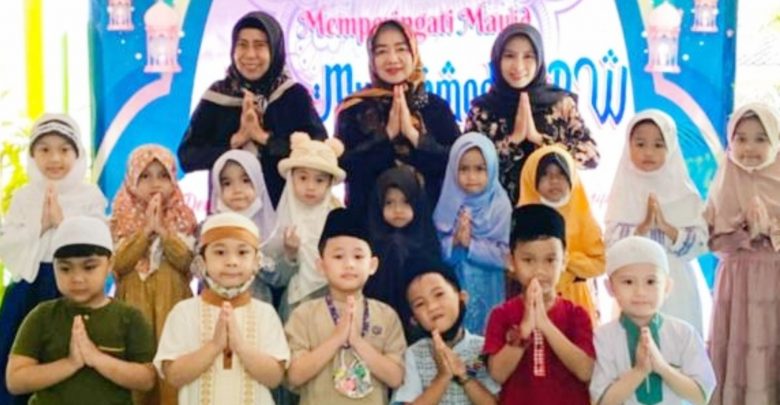 Sejumlah siswa TK Pertiwi Provinsi Lampung, mengikuti peringatan Maulid Nabi Muhammad Saw tahun 1444 Hijriah, di TK setempat, Rabu (26/10/2022). ISTIMEWA