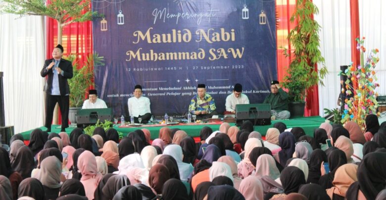 Peringatan Maulid Nabi atau hari kelahiran Nabi Muhammad Saw dengan diikuti para siswa, guru dan tenaga kependidikan sekolah setempat, itu berlangsung khidmat.