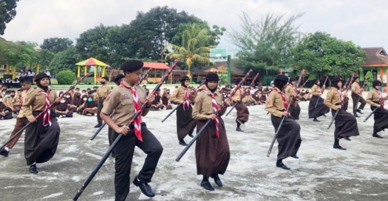 Penampilan ekstrakurikuler pramuka, pada penutupan MPLS SMPN 13 Bandar Lampung, Kamis (21/7/2022). DOK SEKOLAH