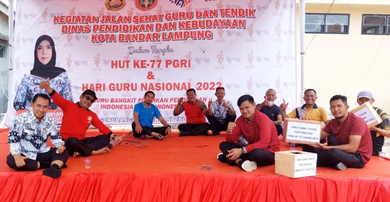 “Ayo para guru dan tenaga kependidikan se-Kota Bandar Lampung, mari kita ramaikan kegiatan jalan sehat HUT ke-77 PGRI dan HGN 2022 dengan tema Guru Bangkit, Pulihkan Pendidikan: Indonesia Kuat, Indonesia Maju. Jangan lupa hadir di Disdikbud pada Sabtu pagi,” ajaknya. (***)