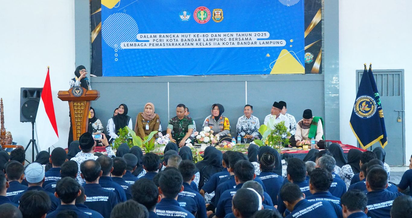 Di hadapan warga binaan, Ketua PGRI Eka Afriana, mengaku senang dapat bertatap muka langsung dengan sekitar 900 orang warga binaan Lapas Narkotika Kelas IIA Bandar Lampung untuk merayakan HUT ke-80 PGRI dan HGN 2025.