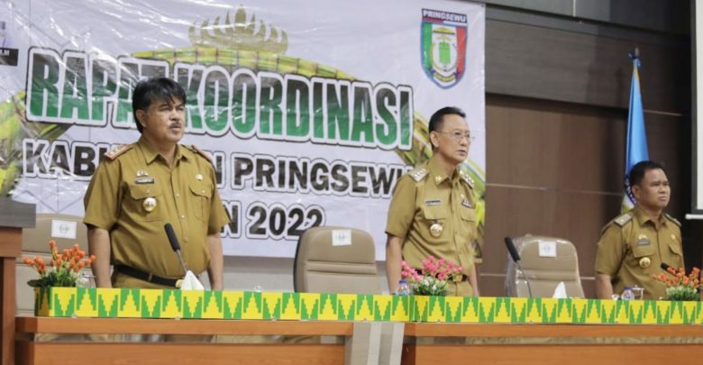 SMARTNEWS.ID – Penjabat Bupati Pringsewu Adi Erlansyah didampingi Sekretaris Daerah Pringsewu Drs.Heri Iswahyudi, dan Asisten Pemerintahan dan Kesra Purhadi, membuka rapat koordinasi Desember 2022, di Aula Utama pemkab setempat, Senin (19/12/2022).