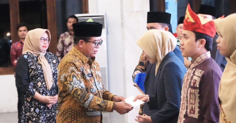Dalam kesempatan tersebut Pj Gubernur Lampung didampingi Kakanwil Departemen Agama Provinsi Lampung, Ketua LPTQ Provinsi Lampung, Kepala Biro Kesra Provinsi Lampung menyerahkan tali asih kepada perwakilan peserta Kafilah MTQ Nasional 2024. (***)