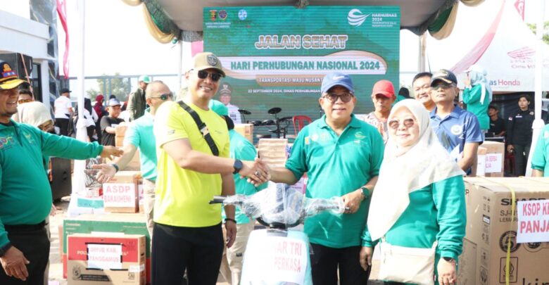 Sementara itu, Kepala Dinas Perhubungan Provinsi Lampung Bambang Sumbogo dalam laporannya menyebutkan bahwa kegiatan jalan sehat ini merupakan rangkaian peringatan Hari Perhubungan Nasional Tahun 2024 yang bertema “Transportasi Maju Nusantara Baru”.