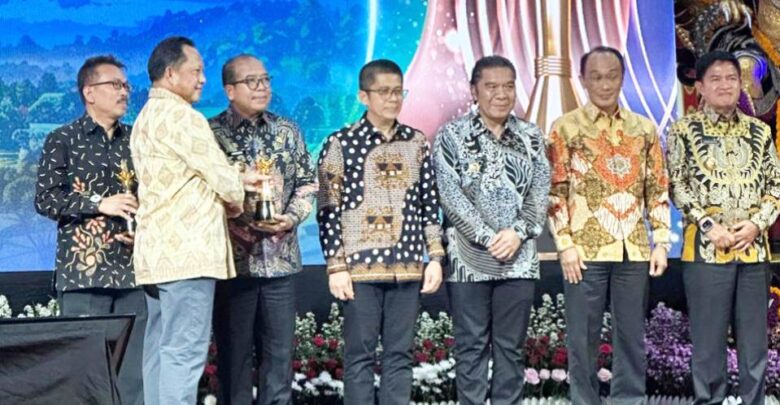 SMARTNEWS.ID – Penjabat (Pj) Gubernur Lampung, Samsudin menerima penghargaan Upakarya Wanua Nugraha 2024 dari Kementerian Dalam Negeri (Kemendagri) yang diserahkan langsung Menteri Dalam Negeri, M. Tito Karnavian, di Gedung Ksirarnawa Komplek Art Center Bali, Denpasar, Bali, Selasa, 8 Oktober 2024.