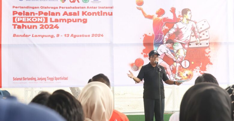 SMARTNEWS.ID – Penjabat (Pj) Gubernur Lampung Samsudin membuka pertandingan olahraga persahabatan antarinstansi vertikal, OJK, dan perbankan, yang digelar Perwakilan Bank Indonesia (BI)Lampung, di Lapangan Tenis Komplek Rumah Dinas BI, Garuntang, Bandar Lampung, Jumat, 9 Agustus 2024.