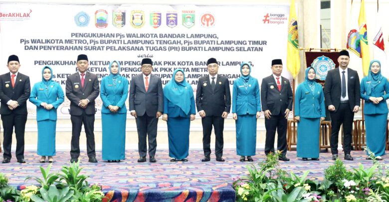 SMARTNEWS.ID – Penjabat (Pj) Gubernur Lampung Samsudin mengukuhkan empat Penjabat Sementara (Pjs) Wali Kota/ Bupati dan Pjs Ketua TP. PKK Kabupaten/ Kota, serta meyerahkan Surat Pelaksana Tugas (Plt) Bupati Lampung Selatan, di Balai Keratun Lantai 3, Kantor Gubernur Lampung, Selasa, 24 September 2024.
