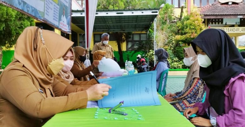 Panitia PPDB SMPN 3 Bandar Lampung, saat melayani pendaftar di hari kedua dibukanya PPDB, di sekolah setempat, Selasa (5/7/2022). ISTIMEWA
