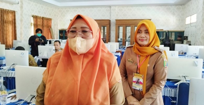 Kepala SMAN 3 Bandar Lampung Tri Winarsih, M.Pd, saat diwawancarai awak media pada hari pertama dibukanya pendaftaran PPDB, Senin (27/6/2022). ISTIMEWA