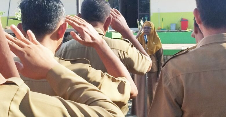Kepala Disdikbud Bandar Lampung, Hj. Eka Afriana, S.Pd, saat memimpin apel di lapangan dinas setempat, Senin, 8 Juli 2024. ISTIMEWA