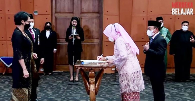 Pelantikan dilakukan Sekretaris Jenderal Kemendikbudristek Ir. Suharti, M.A., Ph.D, dan disiarkan secara langsung melalui kanal Youtube Kemendikbud RI.