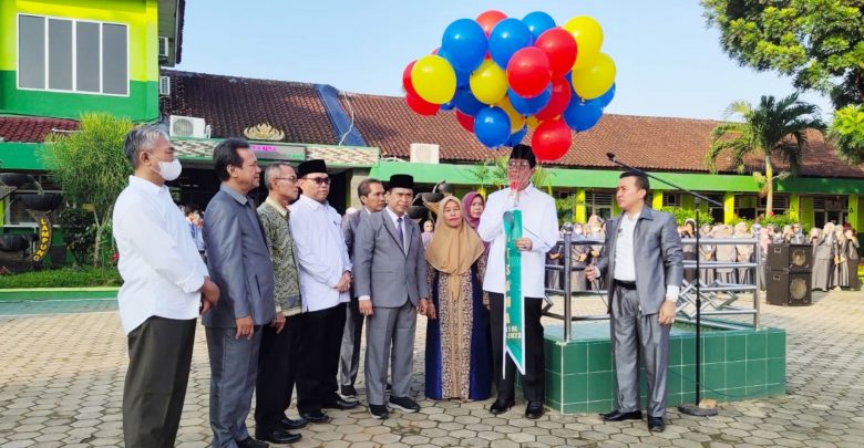 Rektor UIN Raden Intan Lampung, Prof. Dr. Wan Jamaluddin, Ph.D, melepas balon ke udara sebagai tanda dibukanya Matsama MAN 1 Bandar Lampung, Senin (18/7/2022). ISTIMEWA