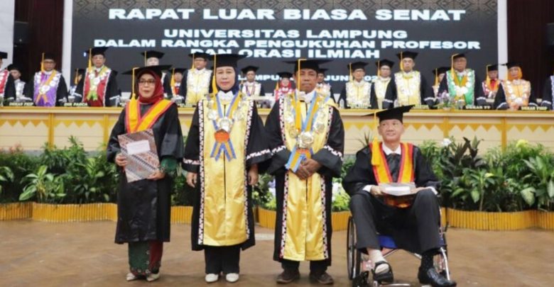 Acara pengukuhan ini juga dihadiri Wali Kota Bandar Lampung Eva Dwiana, jajaran pimpinan Unila, rektor senior, ketua Ikatan Alumni FH Unila, serta tamu undangan dari berbagai instansi dan lembaga.