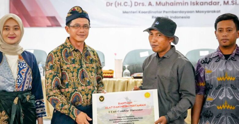 Selain sesi dialog, kegiatan Rembuk Warga juga diisi dengan penyerahan bantuan alat pertanian seperti combine harvester dan peralatan produksi lainnya. Bantuan ini merupakan hasil kolaborasi antara Kemenko PMK, Kementerian Pertanian, Pemerintah Provinsi Lampung, dan Bank BRI.