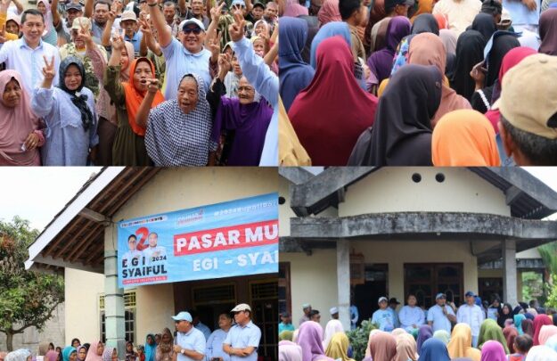 Dalam kegiatan pasar murah itu, pasangan calon bupati dan wakil bupati Egi-Syaiful menyediakan ribuan gula pasir sekitar 1 Kg dengan harga Rp. 2.000 per Kg.