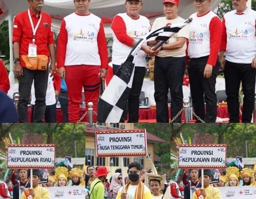 Bupati Lampung Selatan, Nanang Ermanto melepas para peserta Parade Budaya Kontingen Jumbara PMR Tingkat Nasional. Para peserta memulai star dari Lapangan Cipta Karya dan finis di lapangan Korpri Kalianda. Senin (03/07/2023).SMARTNEWS.ID/**/