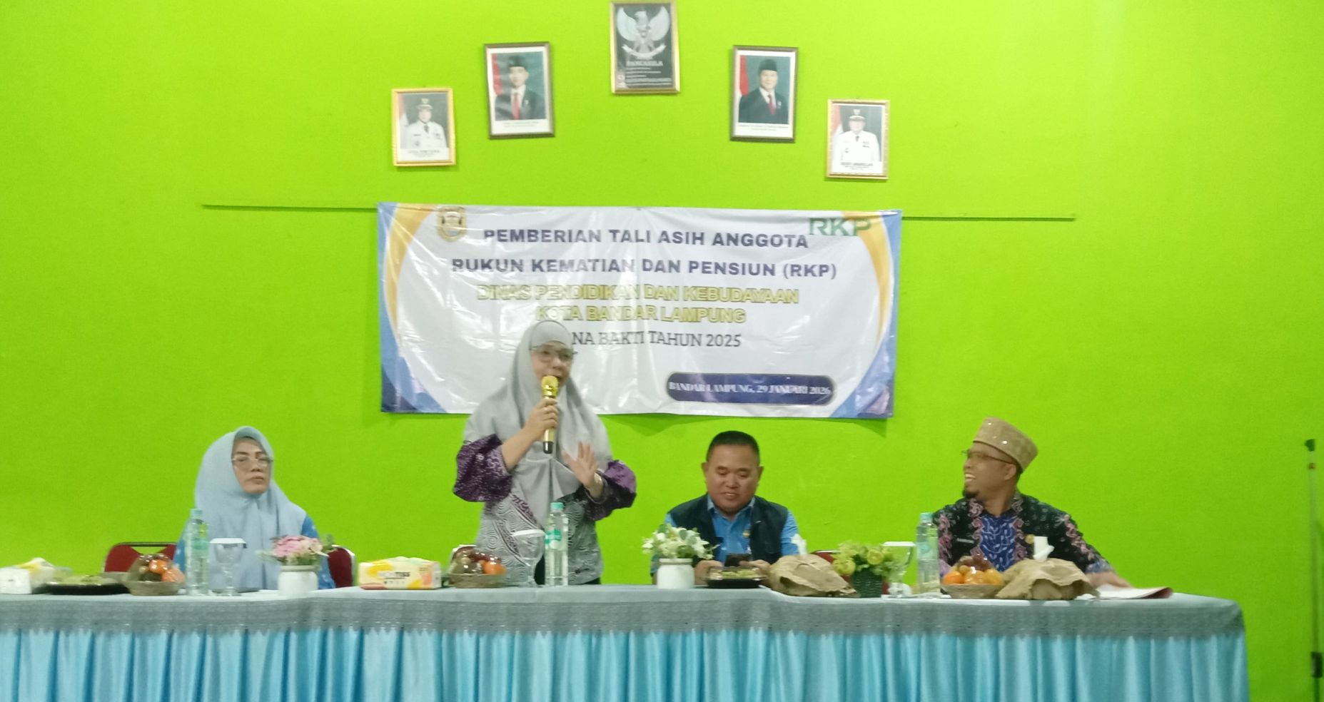 Pembagian tali asih secara simbolis dilakukan Plt Kepala Dinas Pendidikan dan Kebudayaan Bandar Lampung, Hj. Eka Afriana, S.Pd, itu merupakan para pensiun PNS pada 2025 terdiri atas guru dan tenaga kependidikan, serta pegawai Disdikbud.