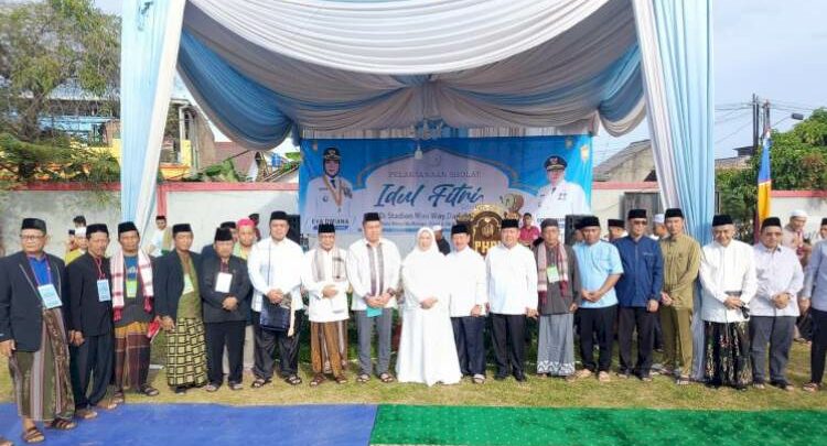 Diketahui, Wali Kota Eva Dwiana bersama keluarganya menjalankan salat Idulfitri di Stadion Mini Way Dadi. Kehadiran Eva Dwiana disambut antusias oleh masyarakat setempat. (***)