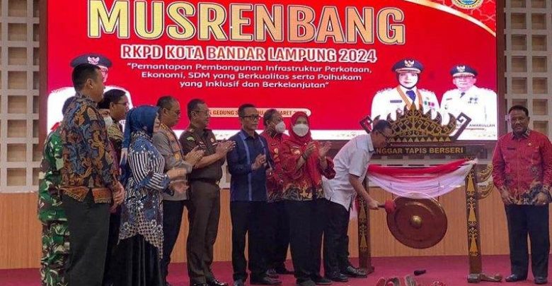SMARTNEWS.ID – Mewakili Gubernur Lampung, Sekretaris Daerah Provinsi Lampung Fahrizal Darminto membuka Musyawarah Perencanaan Pembangunan (Musrenbang) Recana Kerja Pembangunan Daerah (RKPD) Kota Bandar Lampung Tahun 2024, yang diselenggarakan di Aula Semergo Kota Bandar Lampung, Kamis, 9 Maret 2023.
