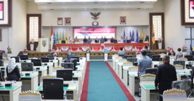 SMARTNEWS.ID – Sekretaris Daerah Provinsi Lampung Fahrizal Darminto dan jajaran anggota Forkopimda menghadiri Rapat Paripurna Penyampaian 6 Raperda usulan DPRD Provinsi Lampung terhadap penjelasan Pimpinan Badan Pembentukan Peraturan Daerah (Bapemperda) DPRD Provinsi Lampung, di Ruang Sidang DPRD Lampung, Senin, 5 Agustus 2024.