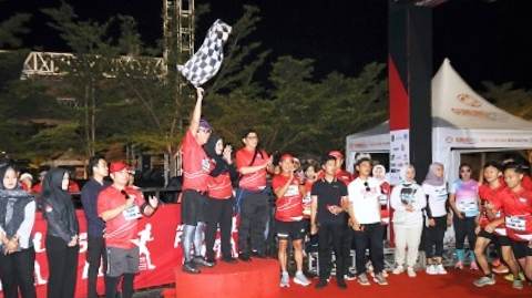 Dalam kesempatan itu, Sekdaprov Fahrizal melepas peserta run 10K sekaligus ikut serta dalam kategori tersebut.