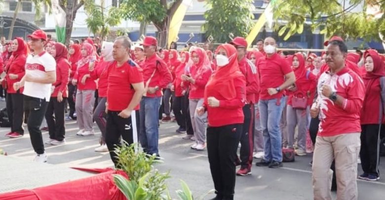 “Senam sehat ini biasanya digelar setiap Sabtu dan Minggu. Untuk senam berhadiah hari ini rangkaian peringatan HUT Kota Bandar Lampung 2023, ujar Wali Kota Eva Dwiana.
