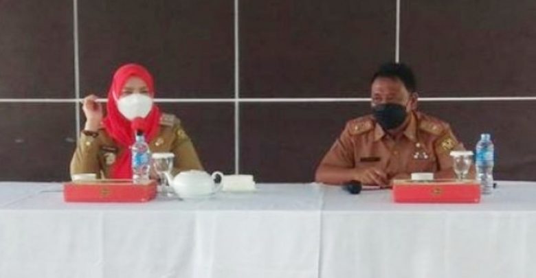 Wali Kota Bandar Lampung Eva Dwiana didampingi Kepala Bappeda Bandar Lampung, Khaidarmansyah, saat refleksi satu tahun kepemimpinannya bersama Deddy Amarullah, di Graha Wangsa, Selasa (1/3/2022). ISTIMEWA