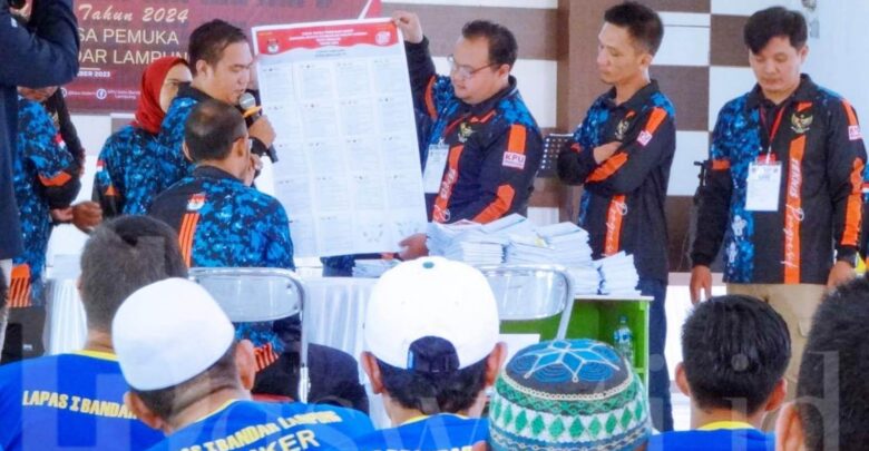 SMARTNEWS.ID – Sebanyak 100 warga binaan pemasyarakatan (WBP), mengikuti simulasi pungut hitung suara, di Lapas Rajabasa Kota Bandar Lampung, Selasa, 19 Desember 2023.