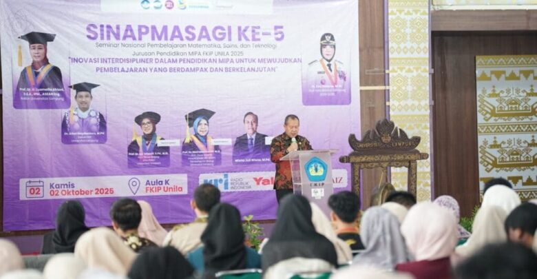 SMARTNEWS.ID – Fakultas Keguruan dan Ilmu Pendidikan (FKIP) Universitas Lampung (Unila) menggelar Seminar Nasional Pembelajaran Matematika, Sains, dan Teknologi (Sinapmasagi) ke-5 pada tahun 2025, Kamis, 2 Oktober 2025.