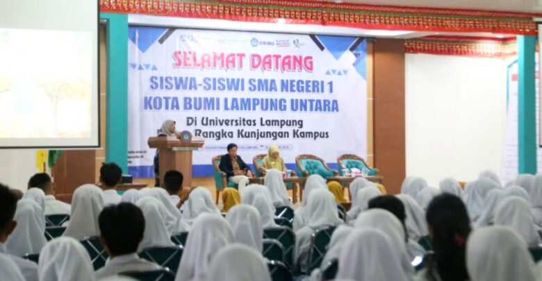 SMARTNEWS.ID – Sebanyak 375 siswa SMA Negeri 1 Kota Bumi, Kabupaten Lampung Utara, serta 75 guru pendamping mengunjungi Universitas Lampung (Unila) di Aula Fakultas Pertanian (FP), Senin, 26 Februari 2024.