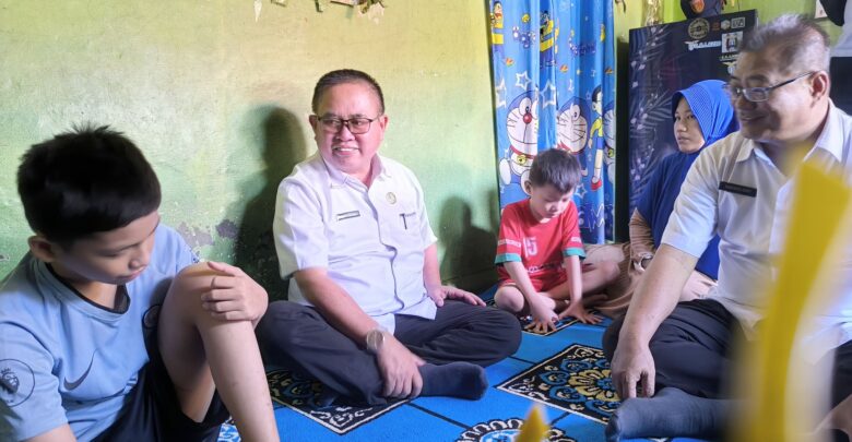 das Disdikbud Bandar Lampung Mulyadi Syukri, S.Sos, didampingi Kepala SMPN 41 Bandar Lampung, Daryanto Hery, S.Pd dan sejumlah guru, saat datang ke tempat tinggal Kenzi di Kecamatan Panjang, Rabu, 16 Oktober 2024. ISTIMEWA