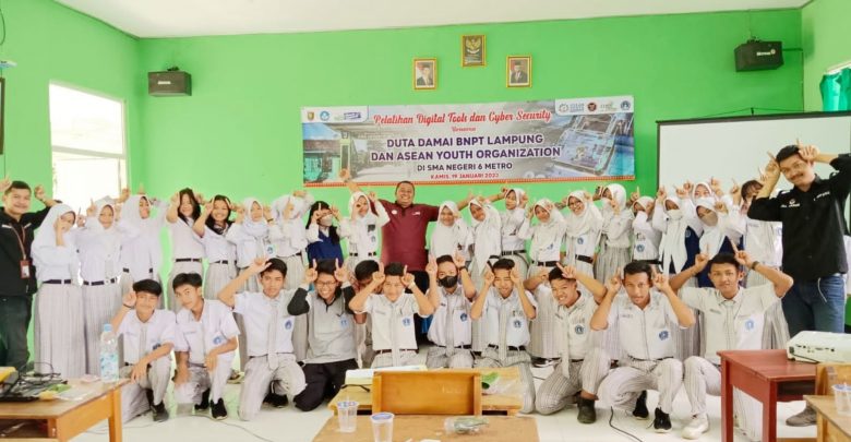 SMARTNEWS.ID – ASEAN Youth Organization bersama Duta Damai BNPT RI Regional Lampung menggelar pelatihan Cybersecurity di SMA Negeri 6 Kota Metro, Kamis, 19 Januari 2023.
