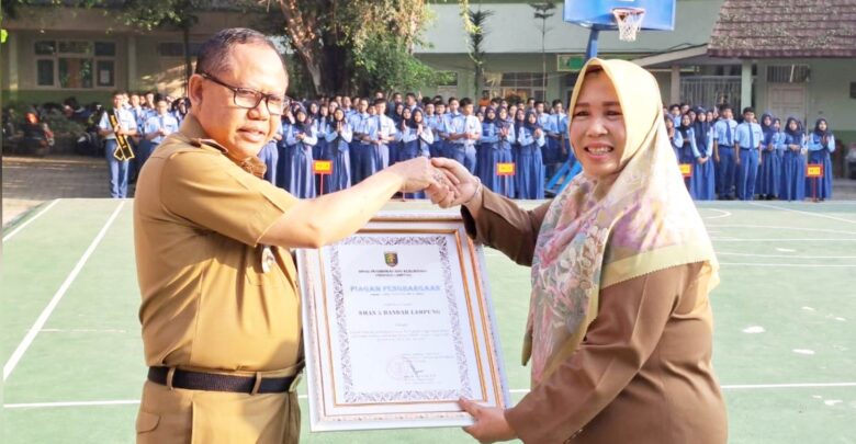 Atas prestasi tersebut, Kepala Dinas Pendidikan dan Kebudayaan Provinsi Lampung, Dr. Drs. Sulpakar, M.M, memberikan piagam penghargaan kepada sekolah di bawah pimpinan Dra. Hayati Nufus, M.Pd, di halaman sekolah setempat pada Selasa, 28 Mei 2024.