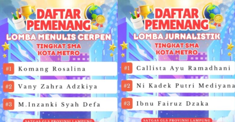 SMARTNEWS.ID – SMA Negeri 6 Metro berhasil peroleh juara 1, juara 2, juara 3 dalam lomba jurnalistik dan menulis cerpen Kota Metro yang digelar Tim GLS Provinsi Lampung.