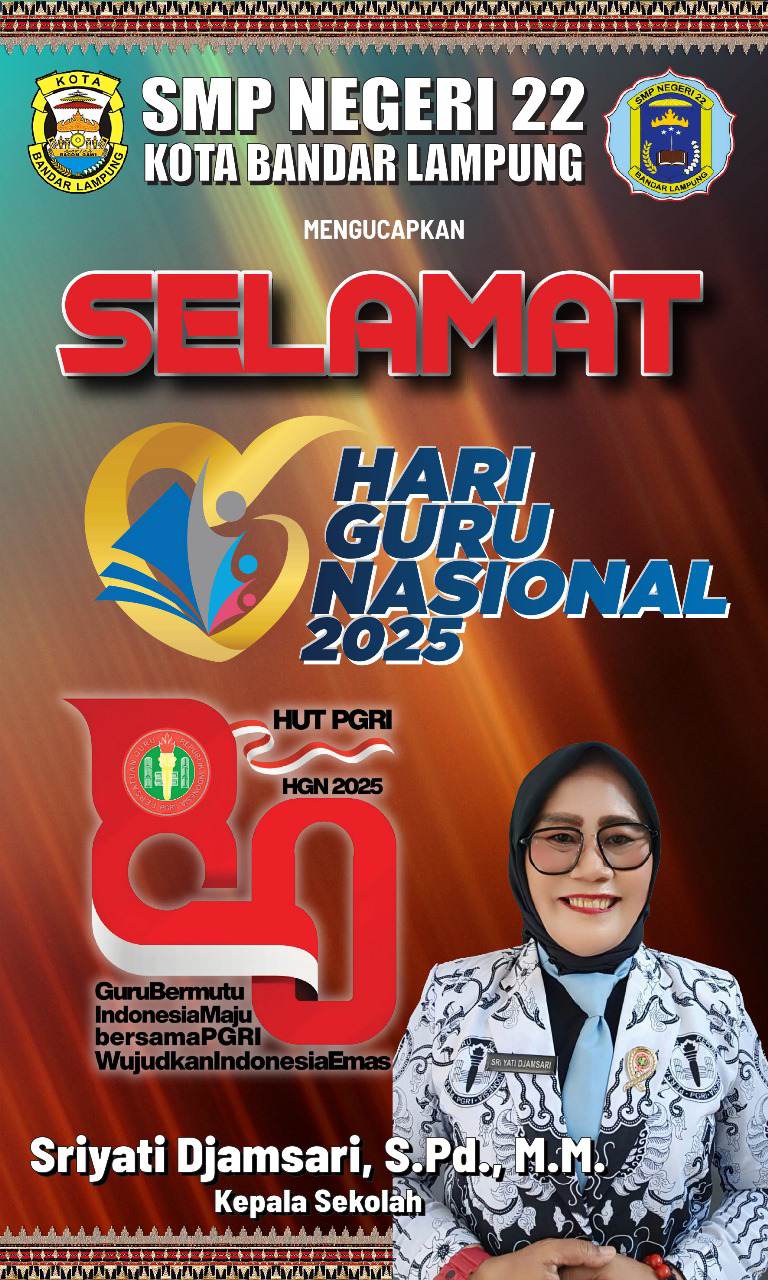 PGRI & HGN SMPN 22 Bandar Lampung Mengucapkan Selamat HUT Ke-80 PGRI & HGN 2025 22 November 2025 0 Less than a minute SMPN 22 Bandar Lampung Mengucapkan Selamat HUT Ke-80 PGRI & HGN 2025
