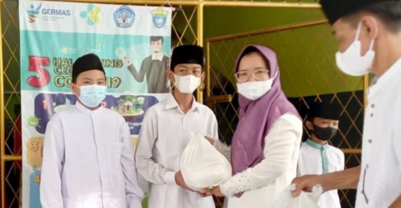Salah satu siswa SMPN 25 Bandar Lampung, saat menerima bingkisan dari Program Ramadan Guru 25 Berbagi yang digelar sekolah setempat, Jumat (22/4/2022). DOK SMPN 23 BANDAR LAMPUNG