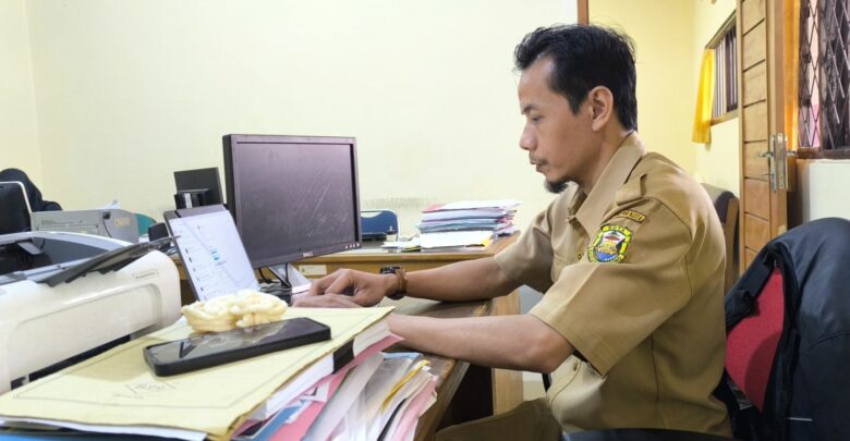Panitia SPMB Disdikbud Bandar Lampung, Hadi Sureken, S.Kom, saat memantau SPMB jenjang SMP pada hari pertama dibukanya pendaftaran, Selasa, 24 Juni 2025. ISTIMEWA