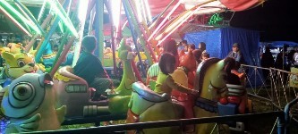 Suasana pasar malam di lapangan sepakbola Desa Pardasuka,Kecamatan Katibung, Lampung Selatan, menjadi sarana hiburan bagi warga sekitar, Sabtu (26/11/2022). FHOTO…