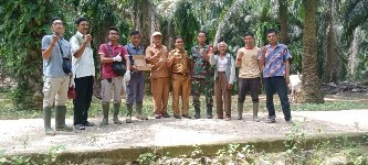 Kepala Desa Sidomekar, Kecamatan Katibung, Lampung Selatan, Suparyanto (Bertopi kanan), saat meninjau pembangunan rabat beton di Dusun Tanjung Iman, Desa…