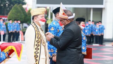Wakil Menteri Dalam Negeri, John Wempi Wetipo, menyematkan tanda kehormatan Satyalancana Karya Satya XXX dari Presiden RI kepada Dirjen Bina…