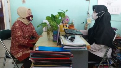 Salah seorang tenaga kontrak Dinas Pendidikan dan Kebudayaan Bandar Lampung (kanan), saat melayani salah seorang guru di dinas setempat, beberapa…