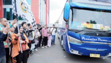 ISTIMEWA SMARTNEWS.ID – Wali Kota Bandar Lampung, Eva Dwiana lepas keberangkatan jemaah umrah kloter tiga dan empat, di halaman kantor…