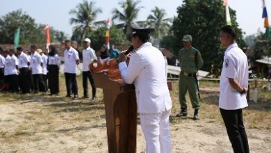 Kepala Pekon Talang Sepuh, Purwanto, saat menjadi inspektur upacara peringatan HUT ke-78 RI, di hlalaman kantor pekon setempat. SMARTNWES.ID –…