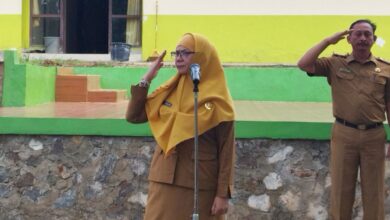 Kepala Disdikbud Bandar Lampung, Hj. Eka Afriana, S.Pd, saat menjadi pembina apel di lapangan dinas setempat, Senin, 12 Februari 2024.…