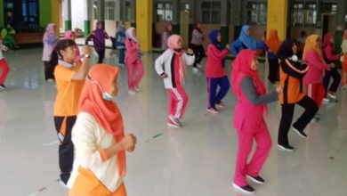 Guru PJOK dan kepala TK/PAUD dan SD se-Korwil IV Disdikbud Bandar Lampung, saat mengikuti senam IBBN, di aula SDN 2…