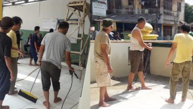 Warga sekitar Masjid Al Iman, Kelurahan Jagabaya 2, Kota Bandar Lampung, saat melakukan bersih-bersih masjid, Minggu, 19 Maret 2023. FOTO:…