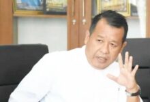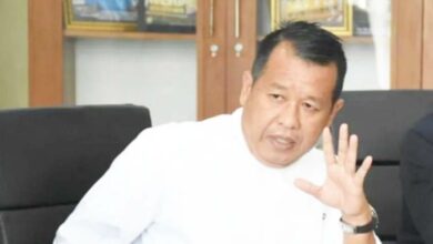 Kapolda Lampung Irjen Pol Hendro Sugiatno meninjau ketersediaan bahan pokok dan minyak goreng curah di Pasar Simpang Pematang, Mesuji. Foto:…